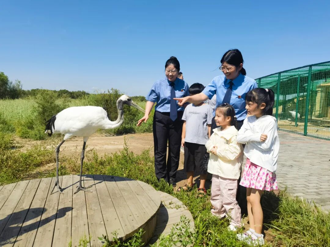 8月28日,东营市垦利区检察院邀请青少年走进山东黄河三角洲国家级自然保护区开展动物保护法治宣传活动。